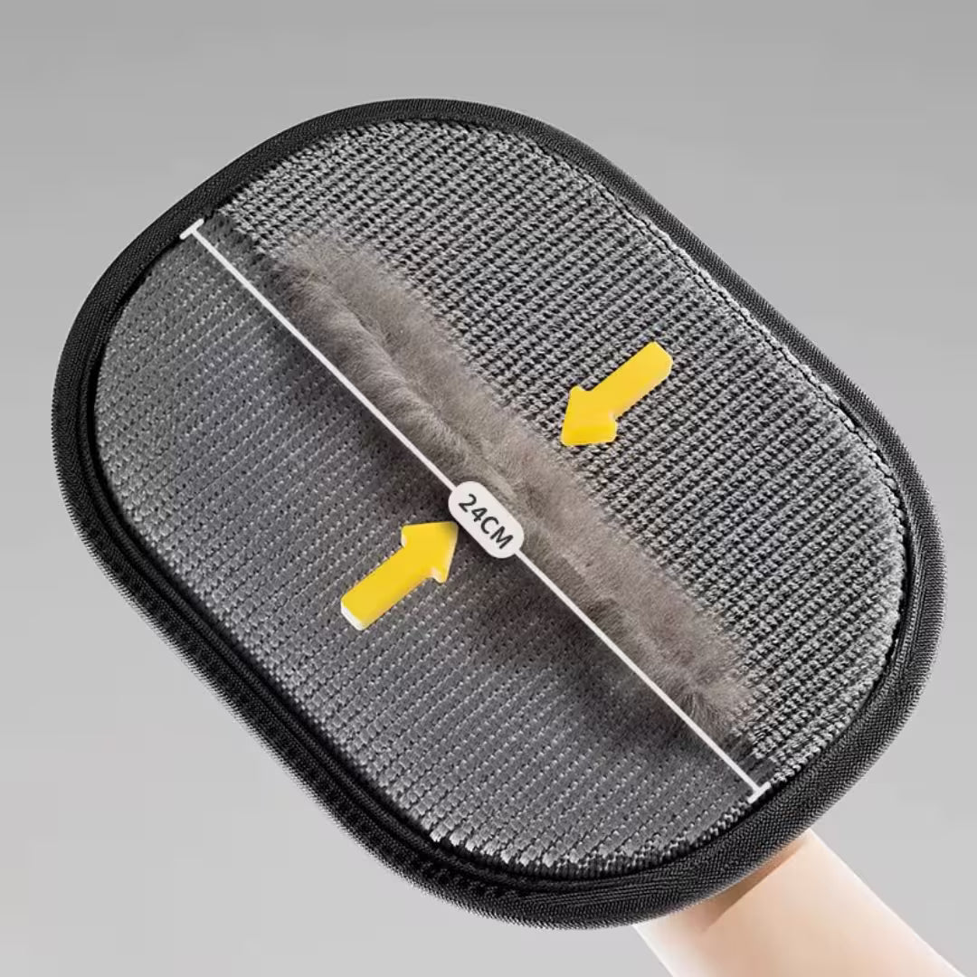 Włóż dłoń do rękawicy i przesuwaj ją ruchem tam–i–z–powrotem po jednej linii. Sierść sama zwinie się w jeden rulon, który łatwo zdejmiesz i wyrzucisz.